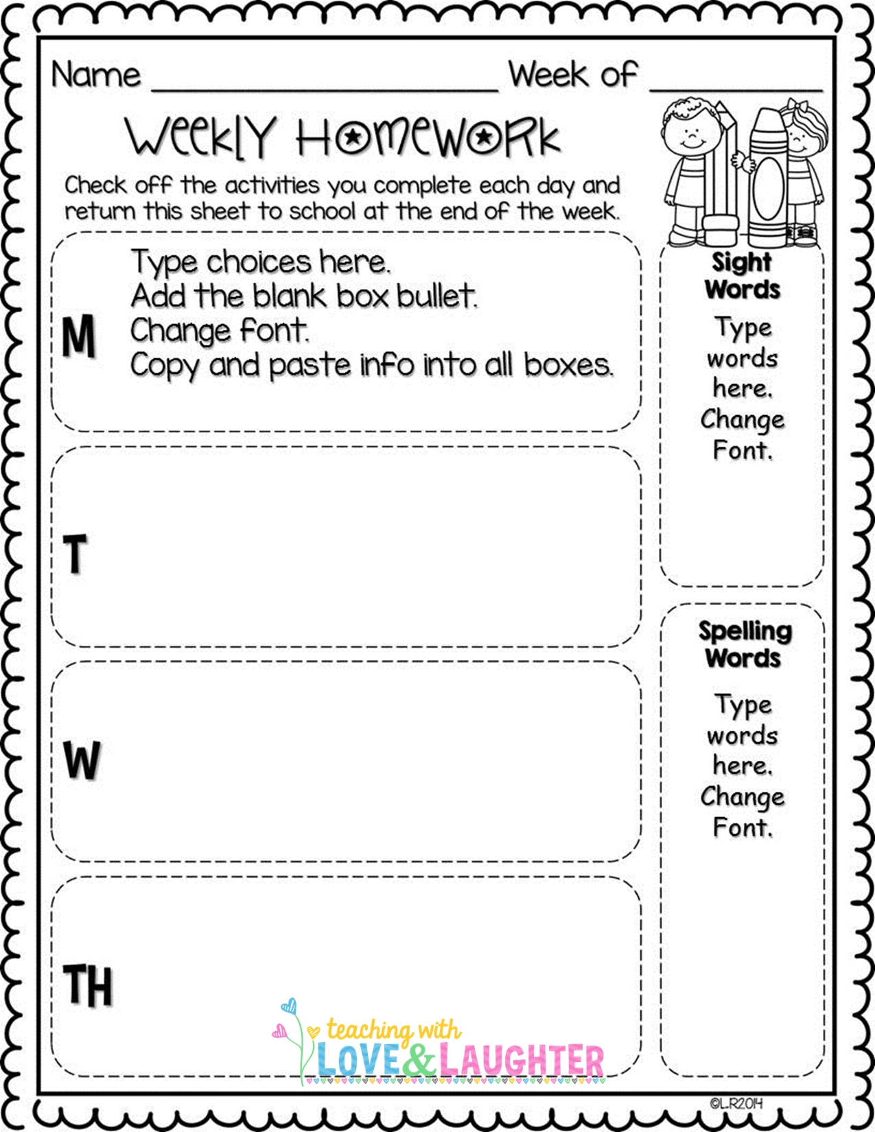Not only is this printable practical and easy to use, but it’s also customizable to fit your specific needs. You can easily add or remove assignments, rearrange them to fit your schedule, or color code tasks for better organization.