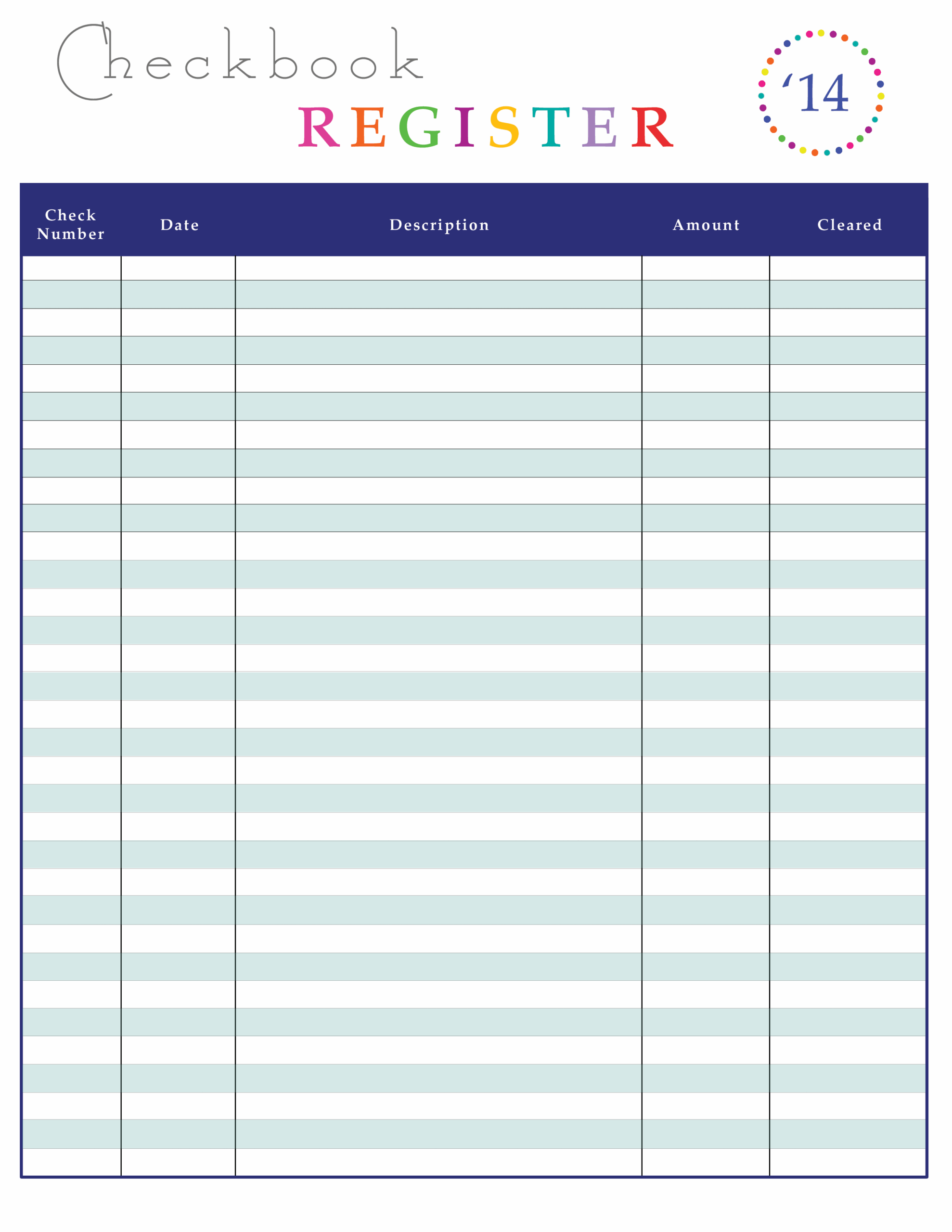 Large Print Check Register PrintableLarge Print Check Register Printable
