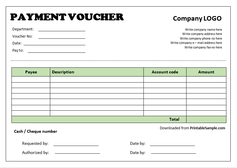 Payment Voucher Template 18 Printable SamplesPayment Voucher Template 18 Printable Samples