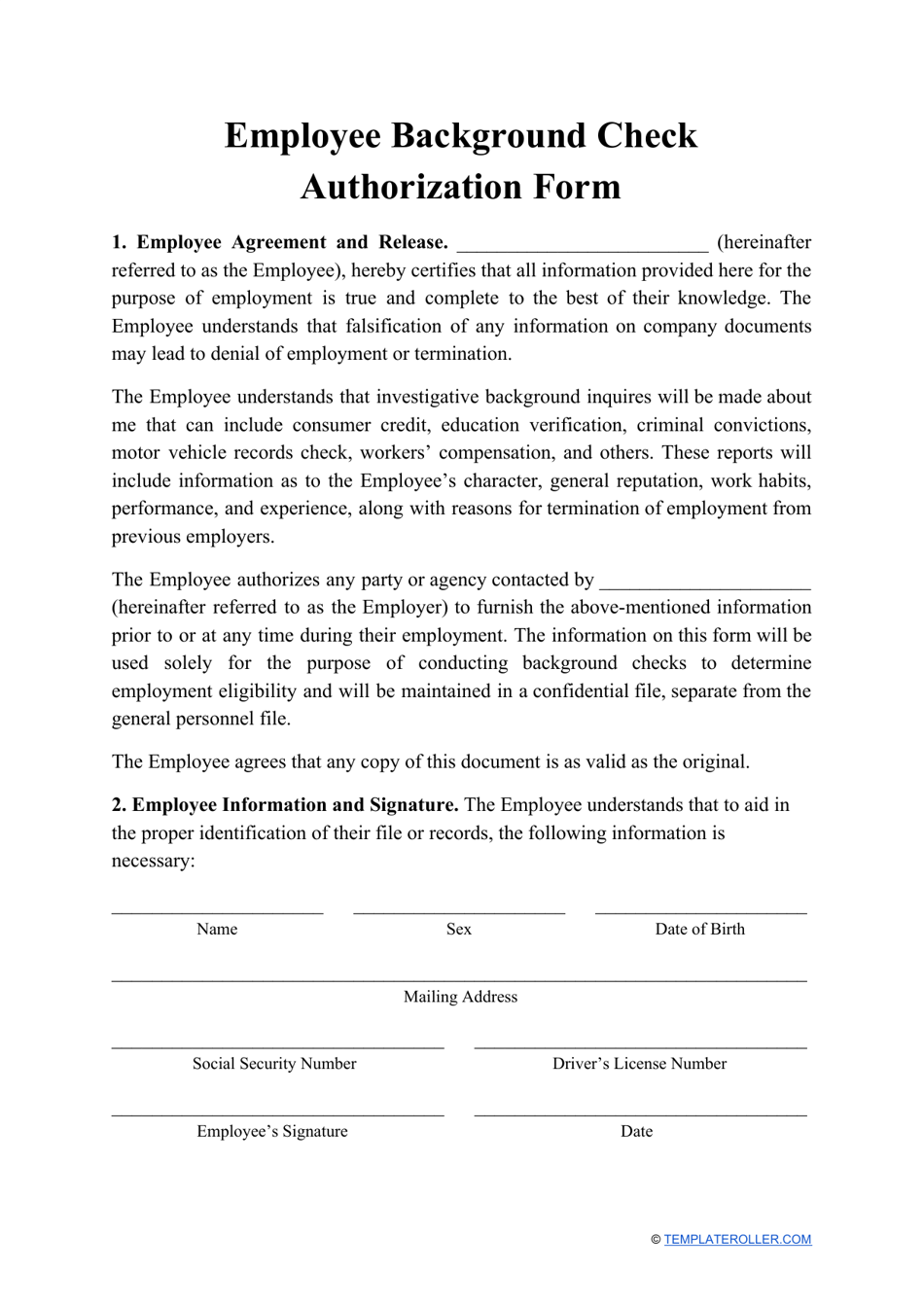 Employee Background Check Authorization Form Fill Out Sign Online Employee Background Check Authorization Form Fill Out Sign Online
