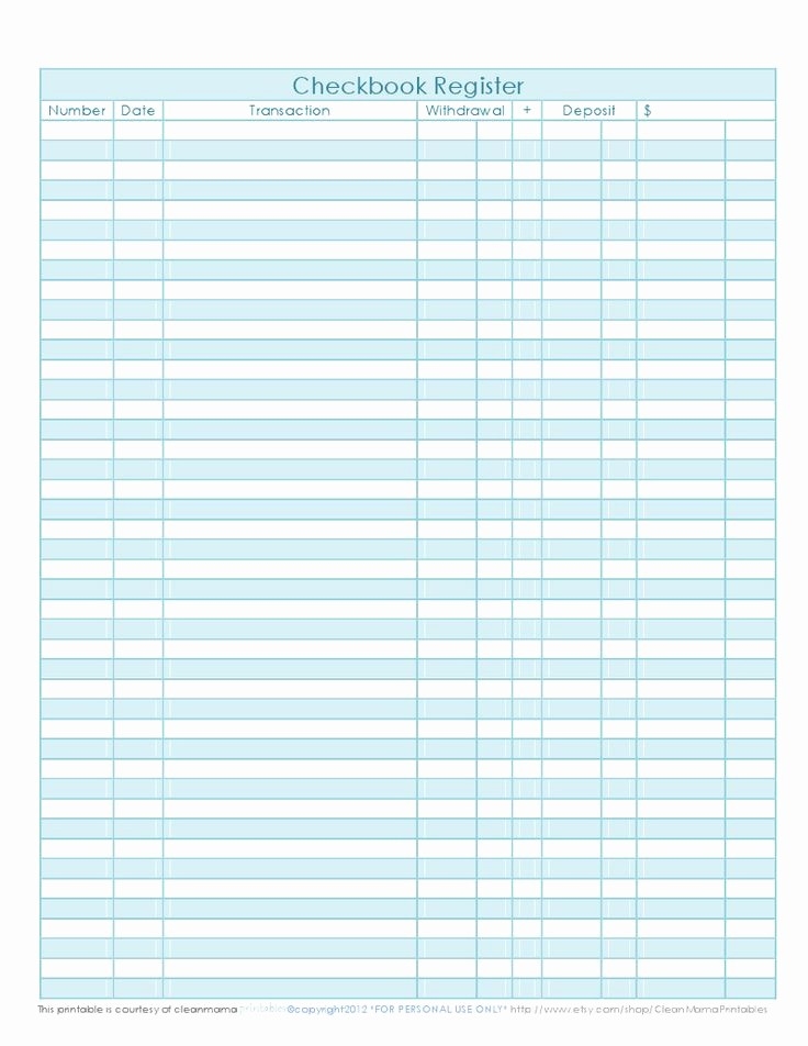 Printable Checking Account Balance Sheet