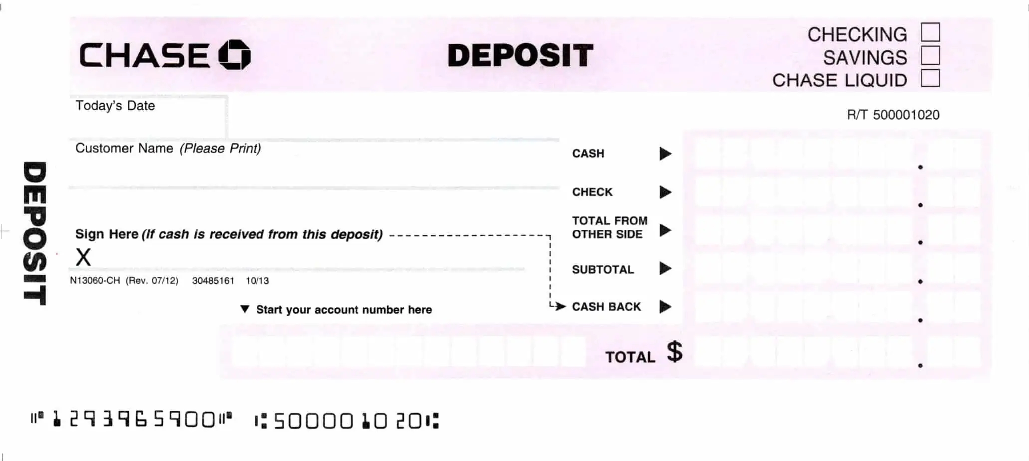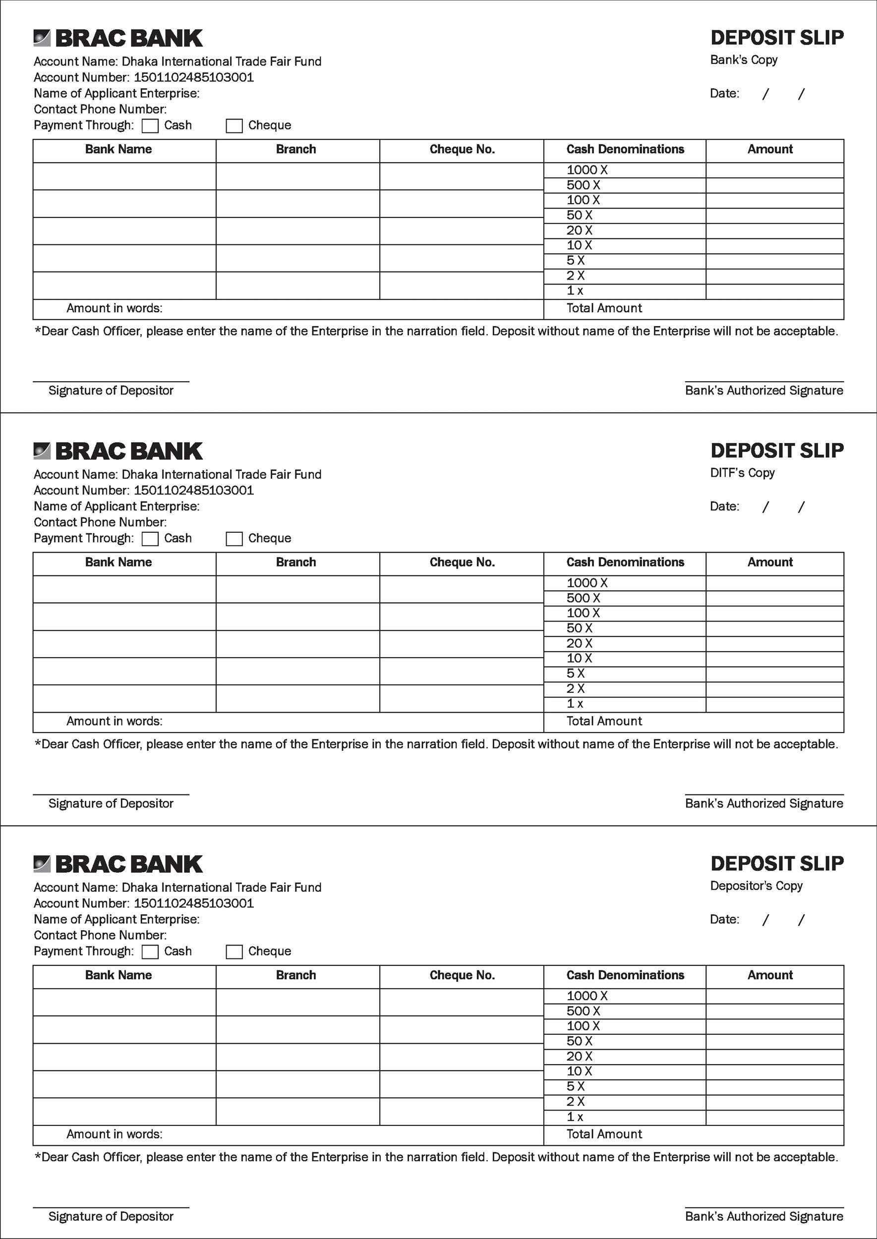 Printable Checking Account Deposit Slips