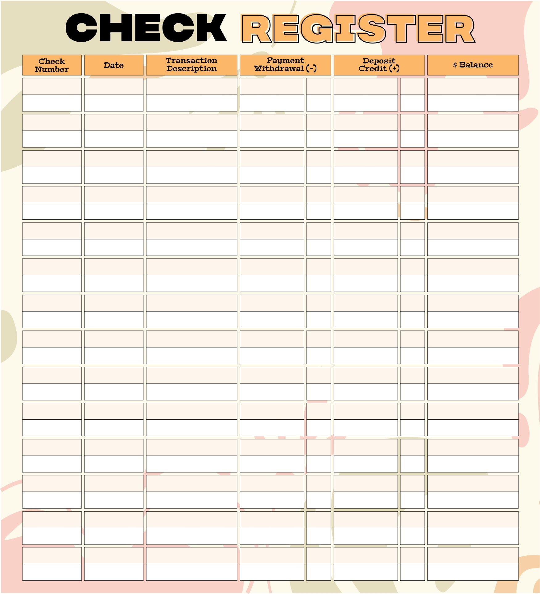 Download and Print Printable Double Sided Check Register