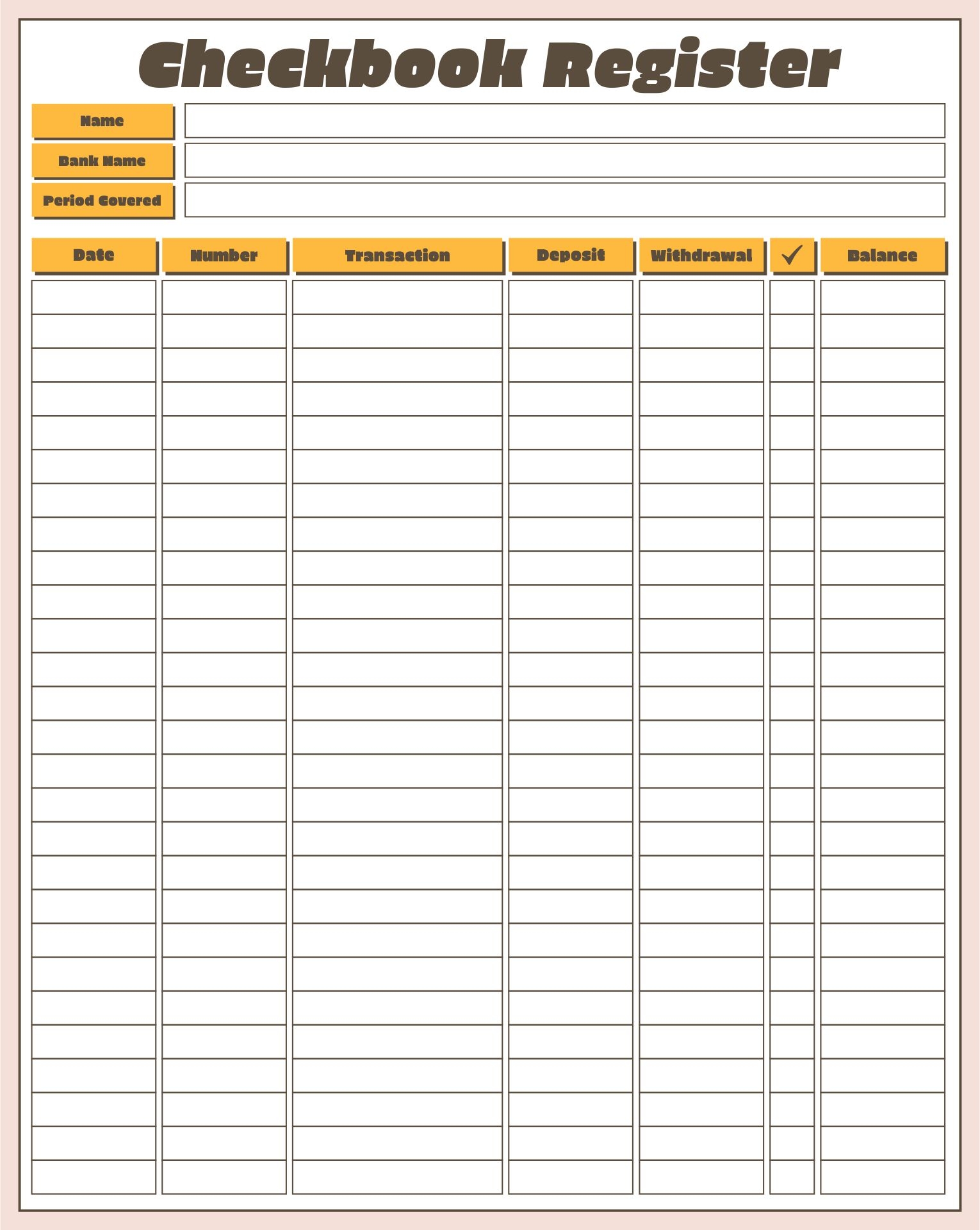 Printable Double Sided Check Register