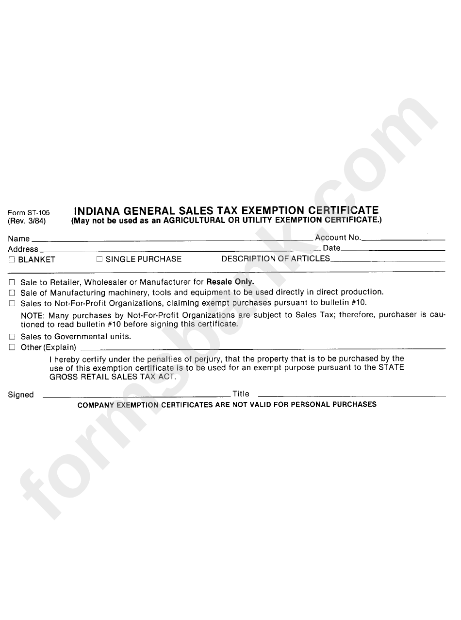 Printable Sales Tax Exemption Form