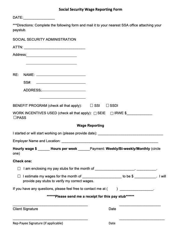 Supplemental Security Income Printable Wage Reporting Form